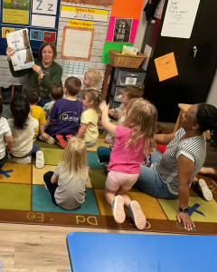 The library visited the children at KidCare Childcare Center this morning. The kids read about a baby bird learning to fly and helped plant some magic seeds!