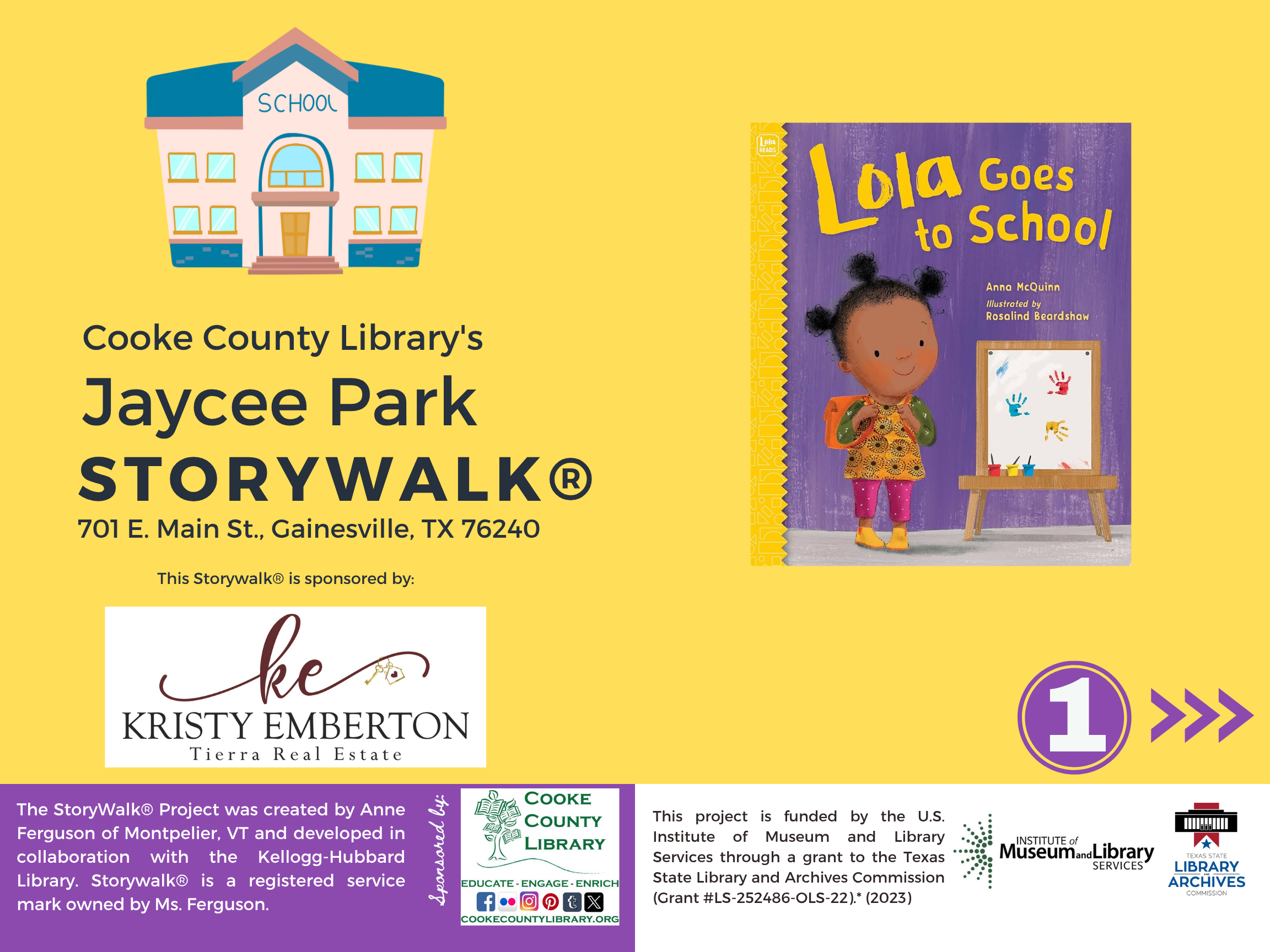 Thanks to our StoryWalk® sponsor, Kristy Emberton – Tierra Real Estate Services.